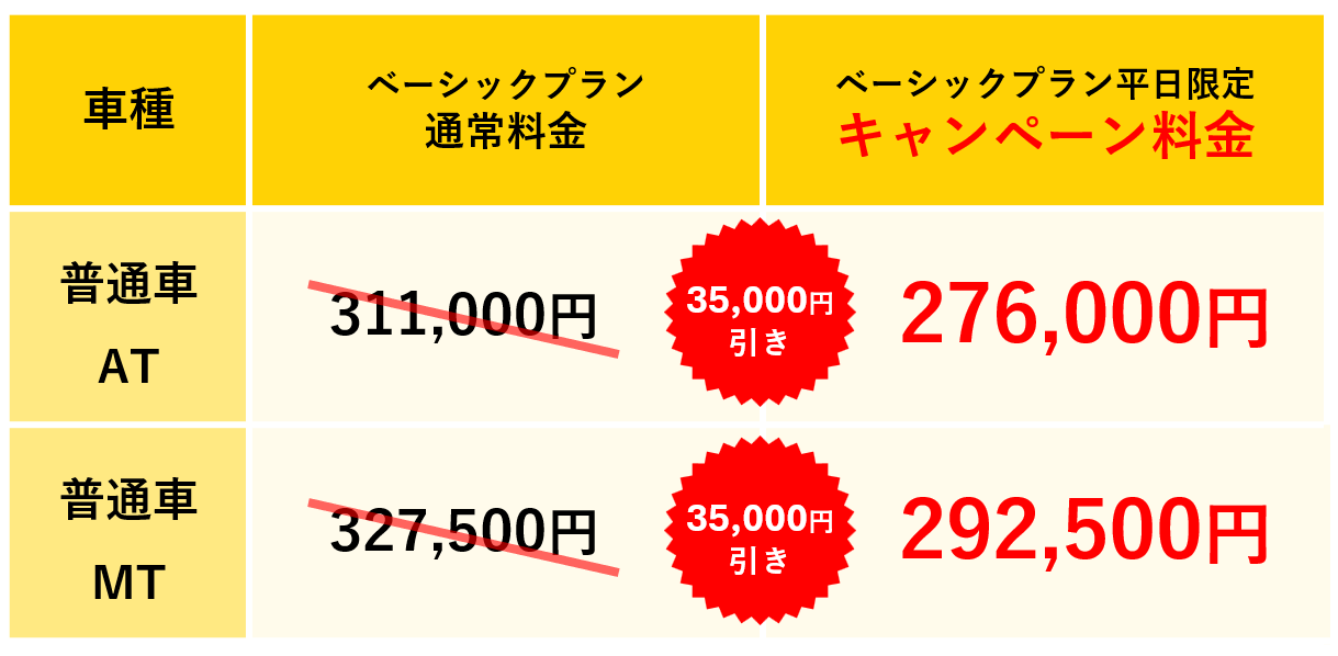 <対象>普通車(仮免入所・限定解除を除く)もしくは準中型(免許なし)で、学生の方