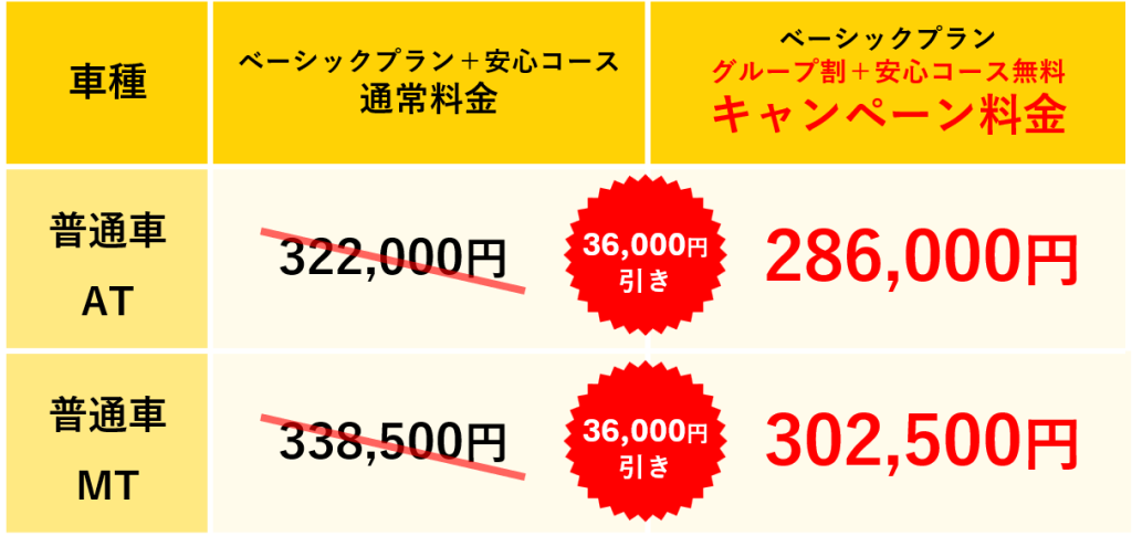 <対象>普通車もしくは準中型(免許なし)でご入所の方